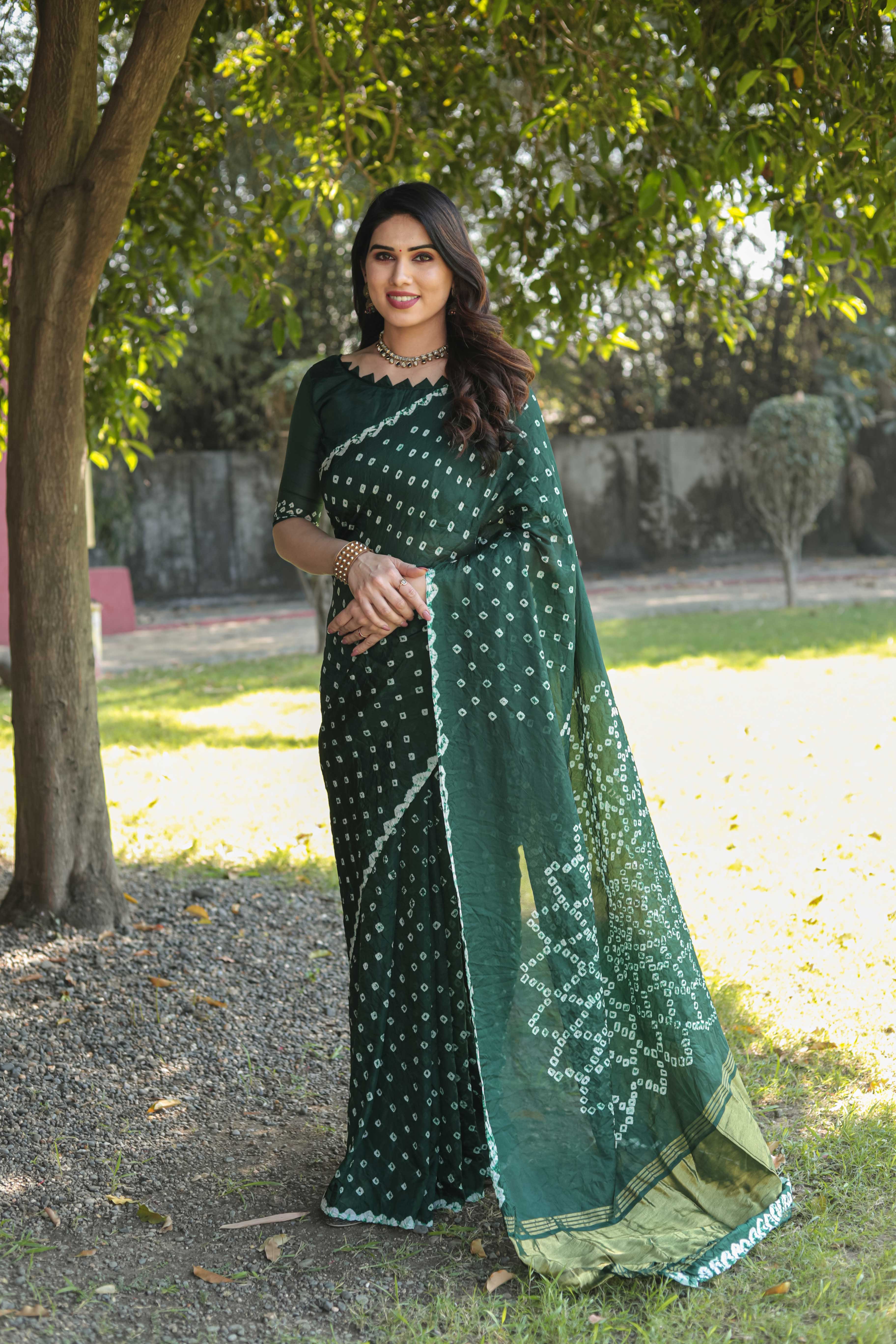 Original Bandhej Green Color Beautiful Design Saree