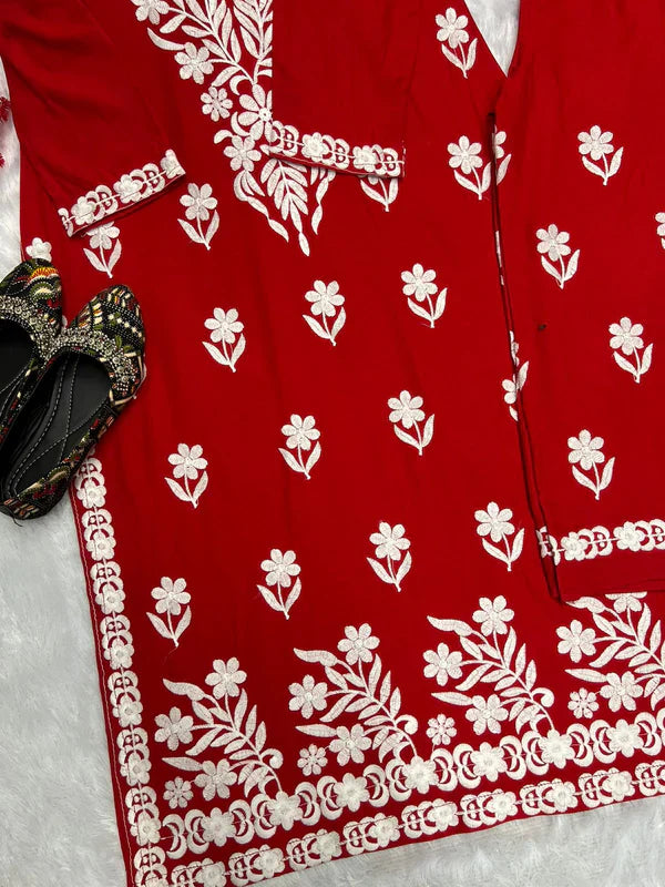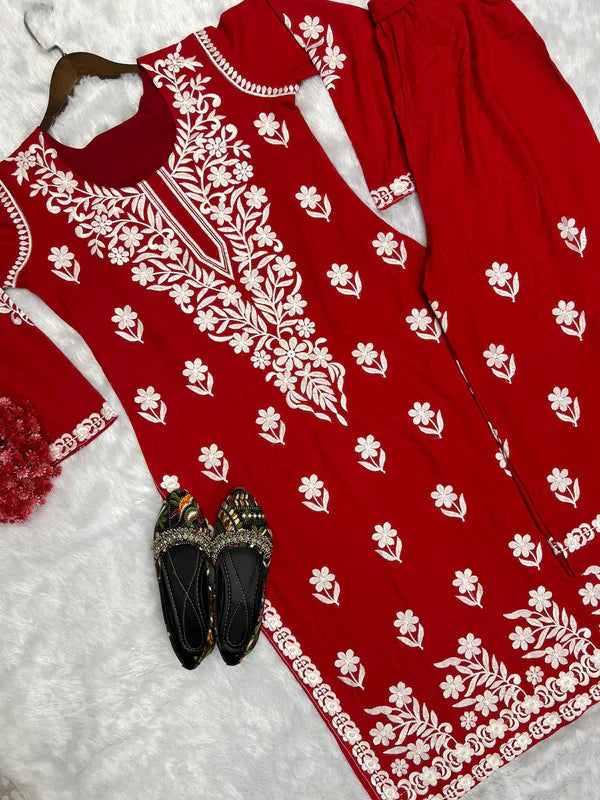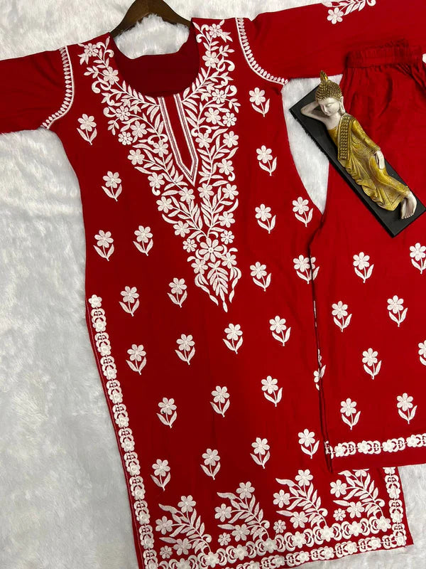 This ensemble is crafted with rayon fabric, known for its softness, breathability, and smooth texture, ensuring comfort throughout wear. The kurta and plazzo set weighs 470 grams, making it lightweight and easy to carry.