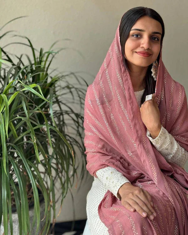 The kurta has a height of 49 inches, providing a graceful drape that enhances the overall silhouette. The set includes a dupatta measuring 2.2 meters, complementing the ensemble with its matching design and fabric.