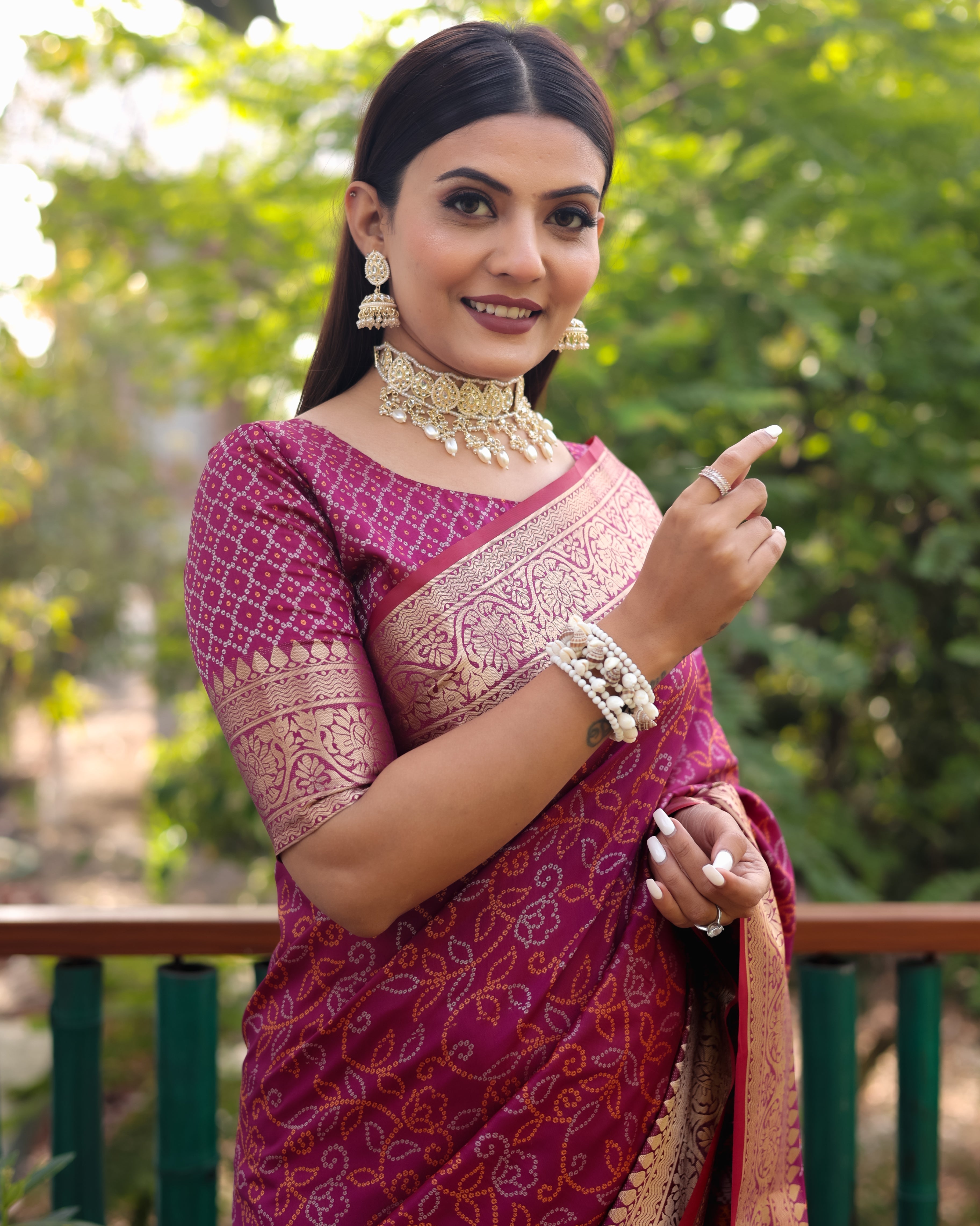 Wine Color kanchi Border Rich Pallu Bandhej Saree