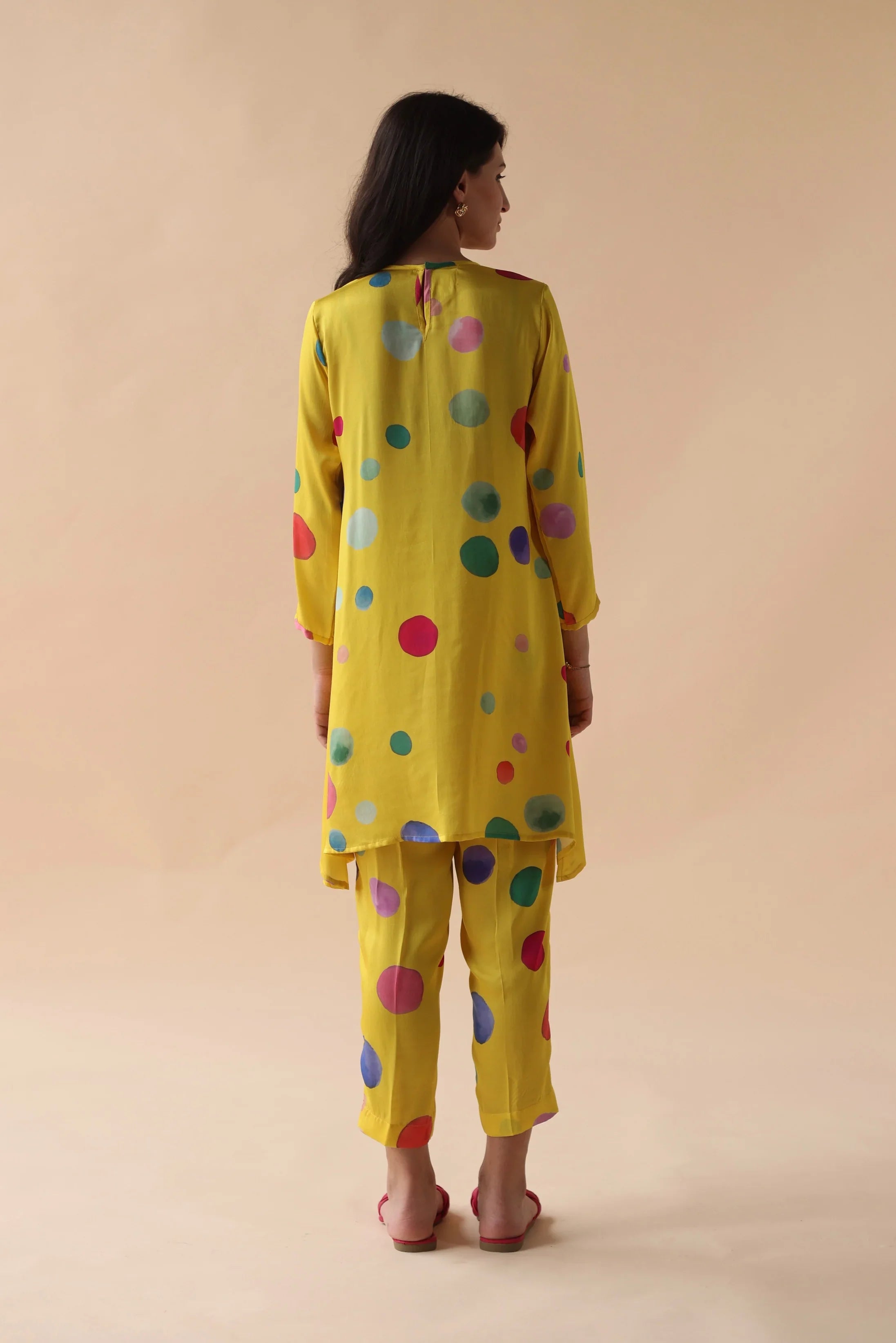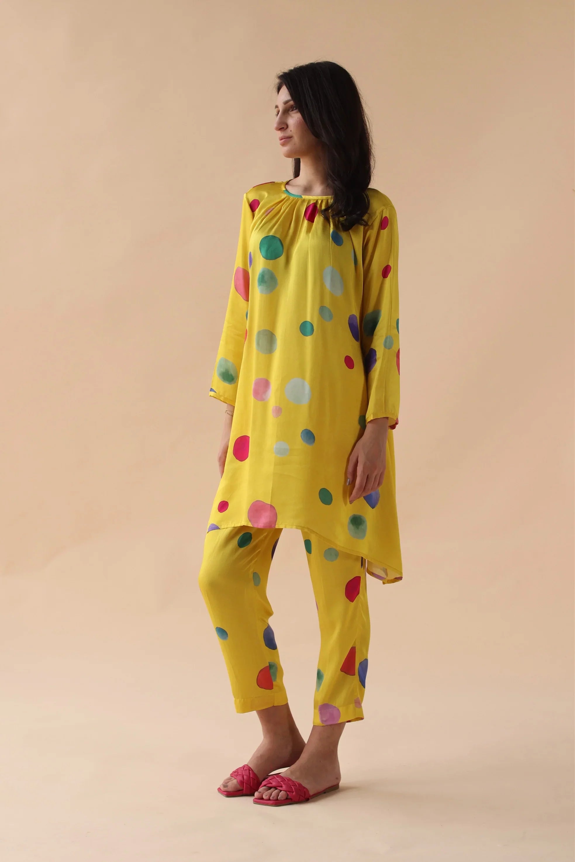 In a radiant shade of yellow, this co-ord set exudes warmth and vitality, capturing the essence of a sun-drenched day with its vibrant hue. Whether worn together as a coordinated ensemble or mixed and matched with other pieces from your wardrobe, this versatile set is sure to elevate any outfit with its timeless charm and effortless elegance.